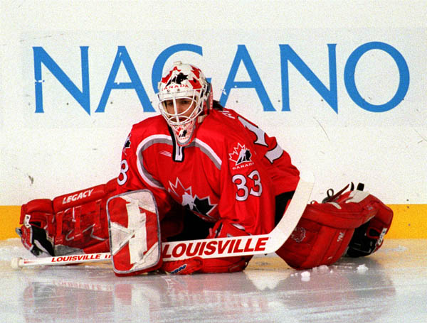 Manon Rhéaume du Canada participe au hockey aux Jeux olympiques d’hiver de Nagano de 1998. (PC Photo/AOC)